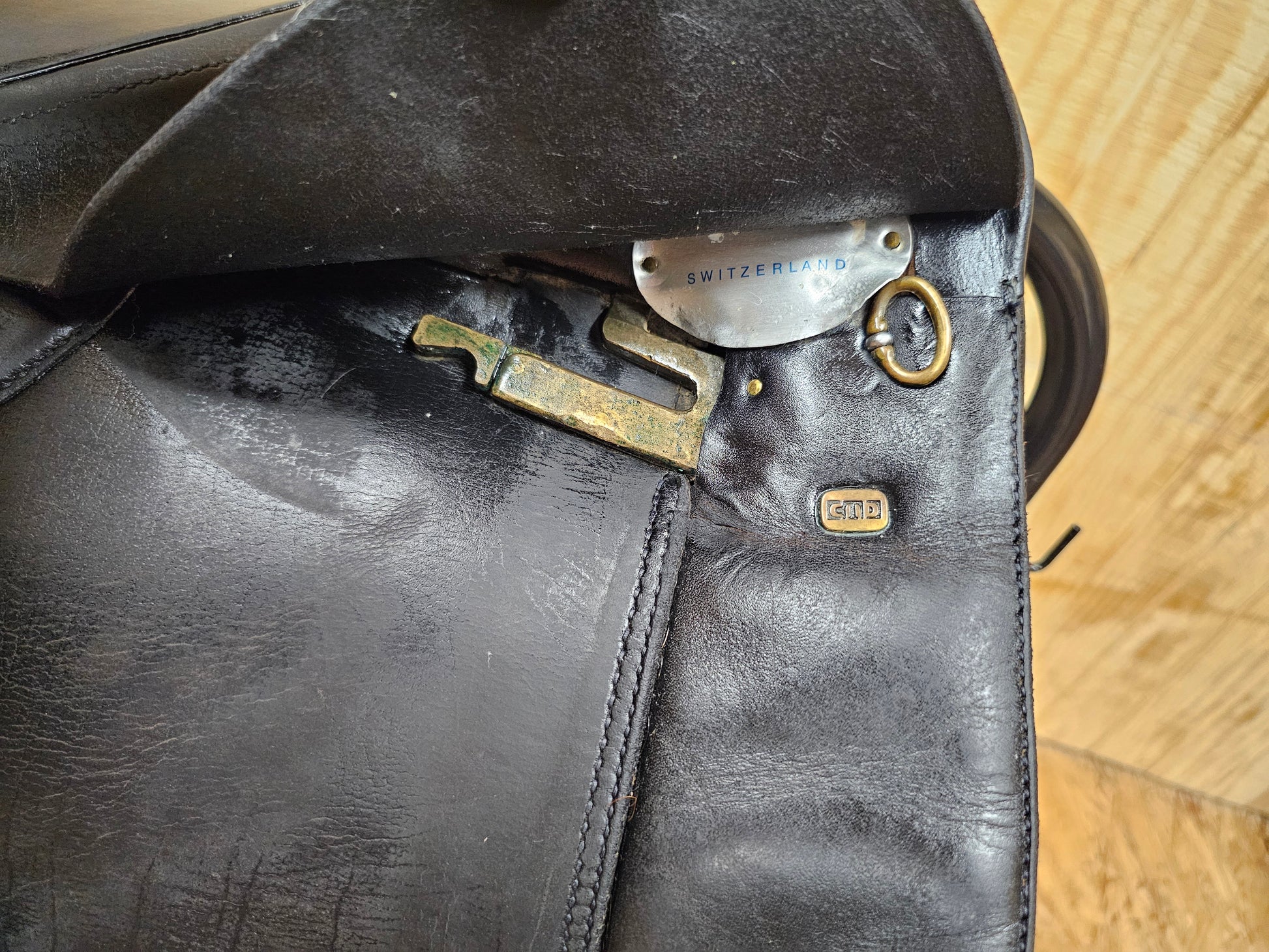 Black 18" Stübben Parcour Dressage Saddle, wide tree, in decent condition, could use a re-dye please see pictures.