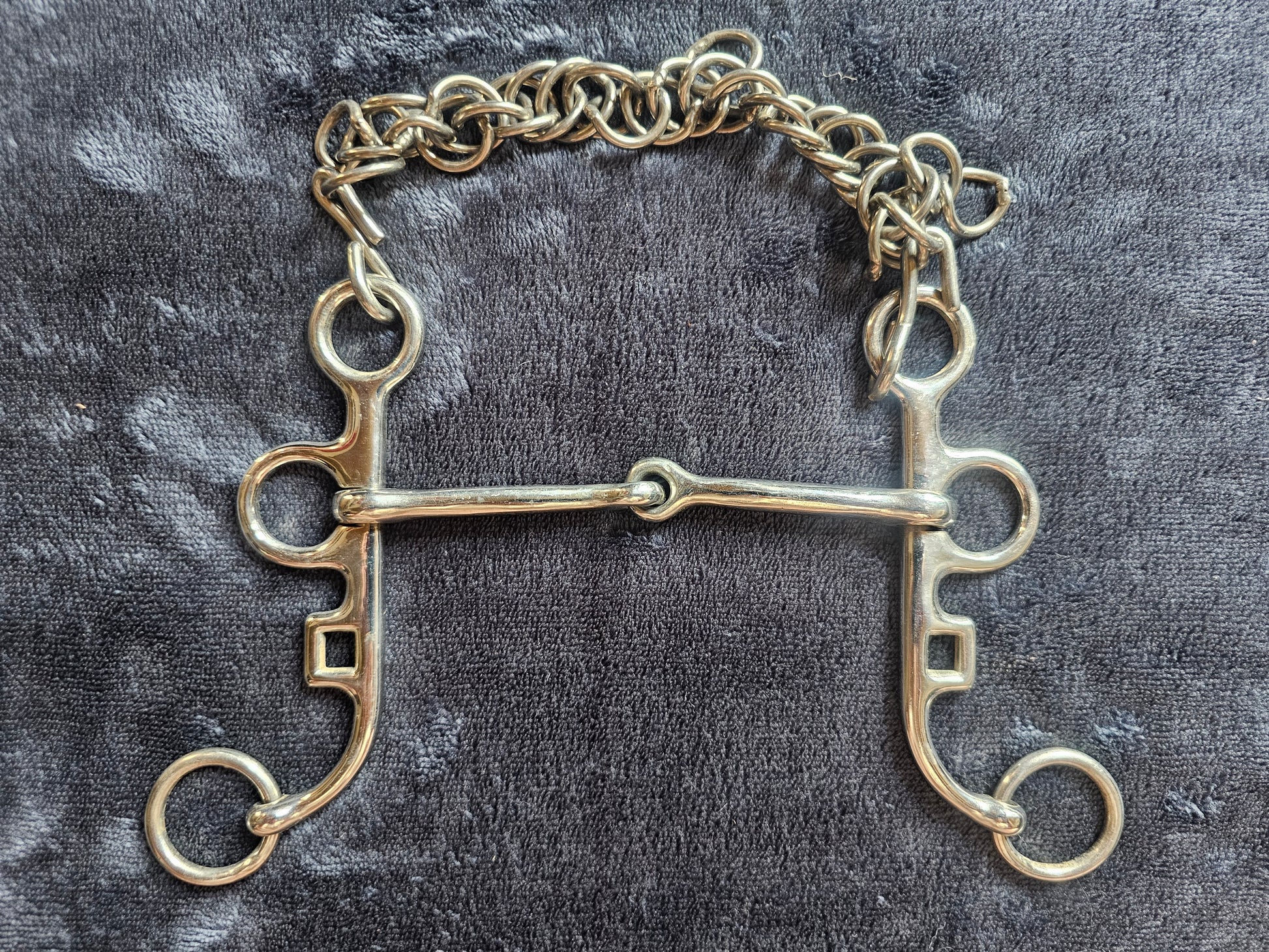 5" Pelham Bit, single jointed, english horse bit with curb chain