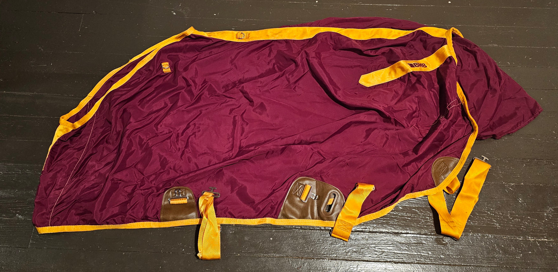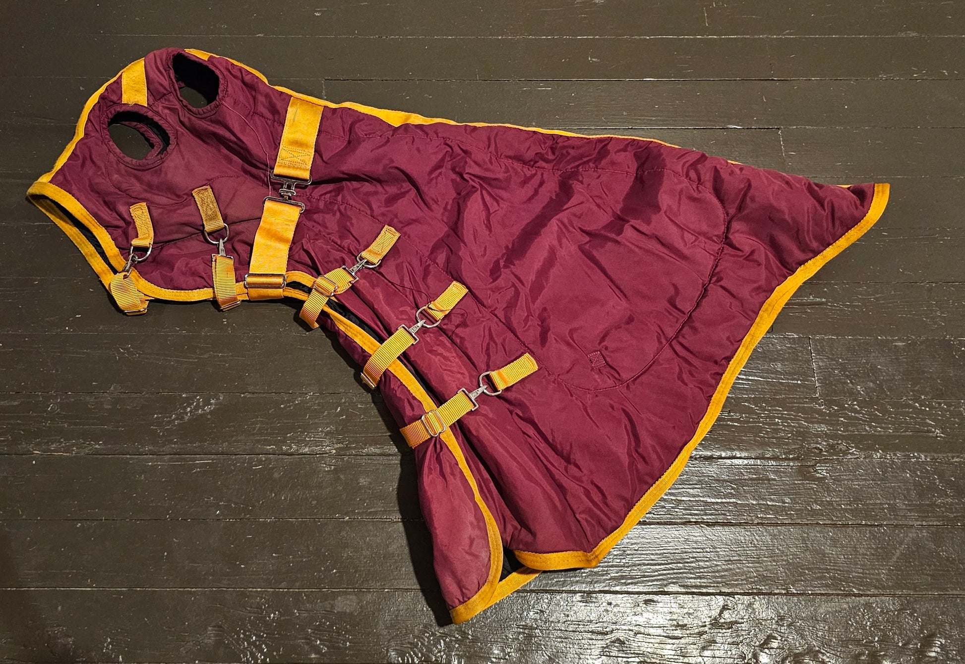 64" BMB 3 piece Combo, heavy filled Hood (like new) and blanket (fairly decent condition), as well as a matching rain sheet (like new) with closed front