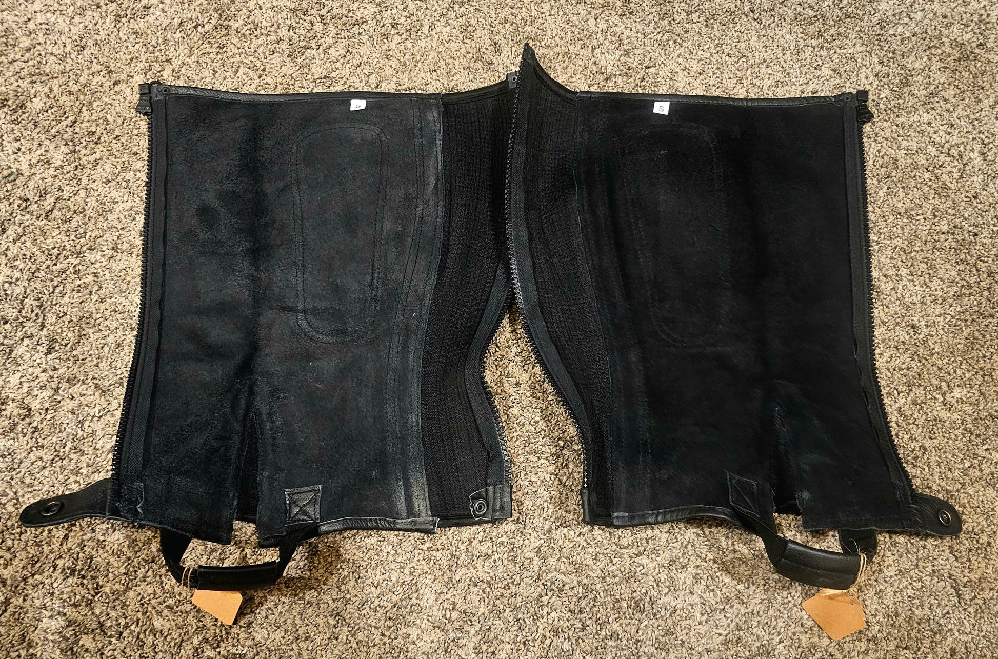 Black leather half chaps with zipper, Adult size S, excellent condition, barely used, calf 14", 16" length
