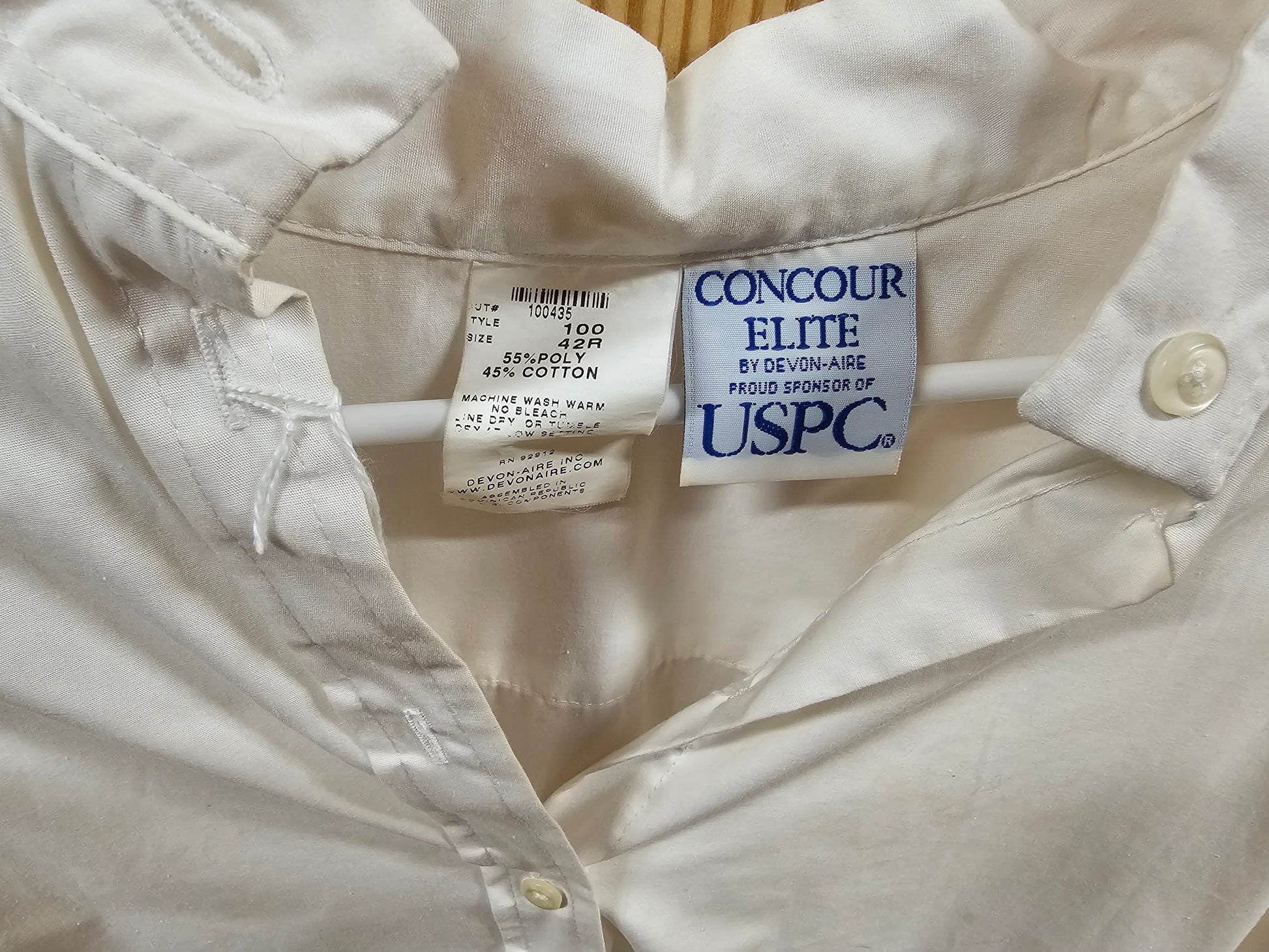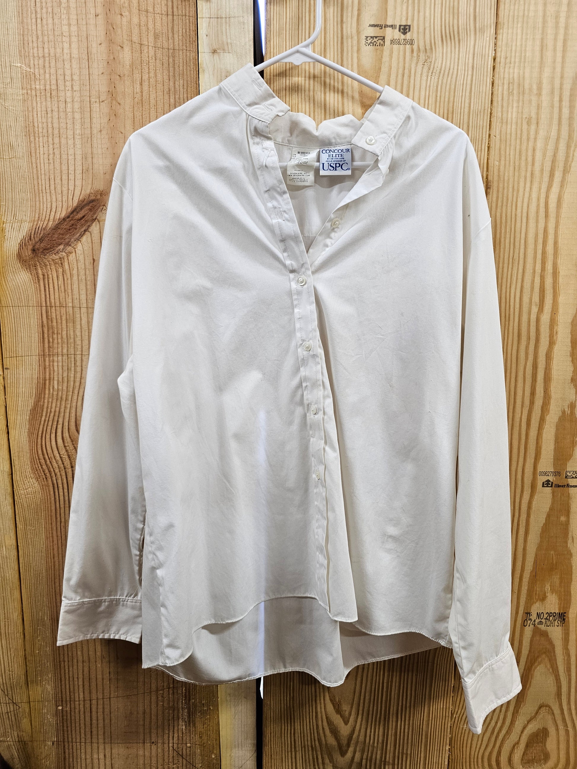 White Show Shirt, Concours Elite by Devon Aire, size 42R, minor brown and green stains