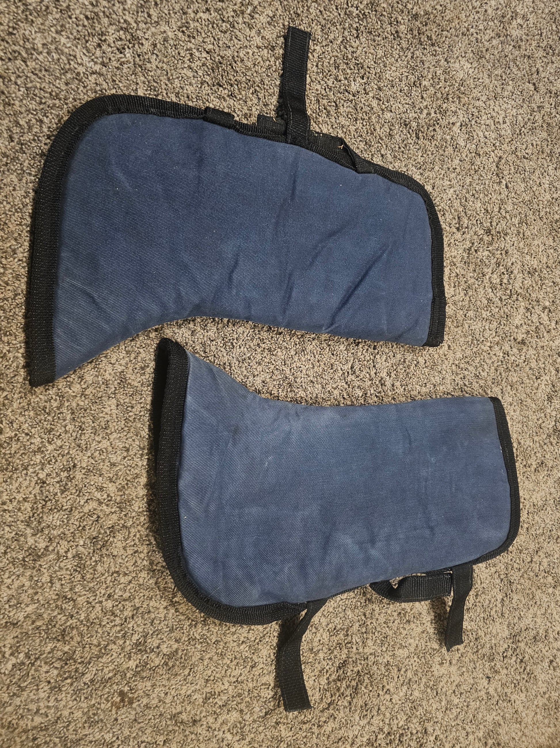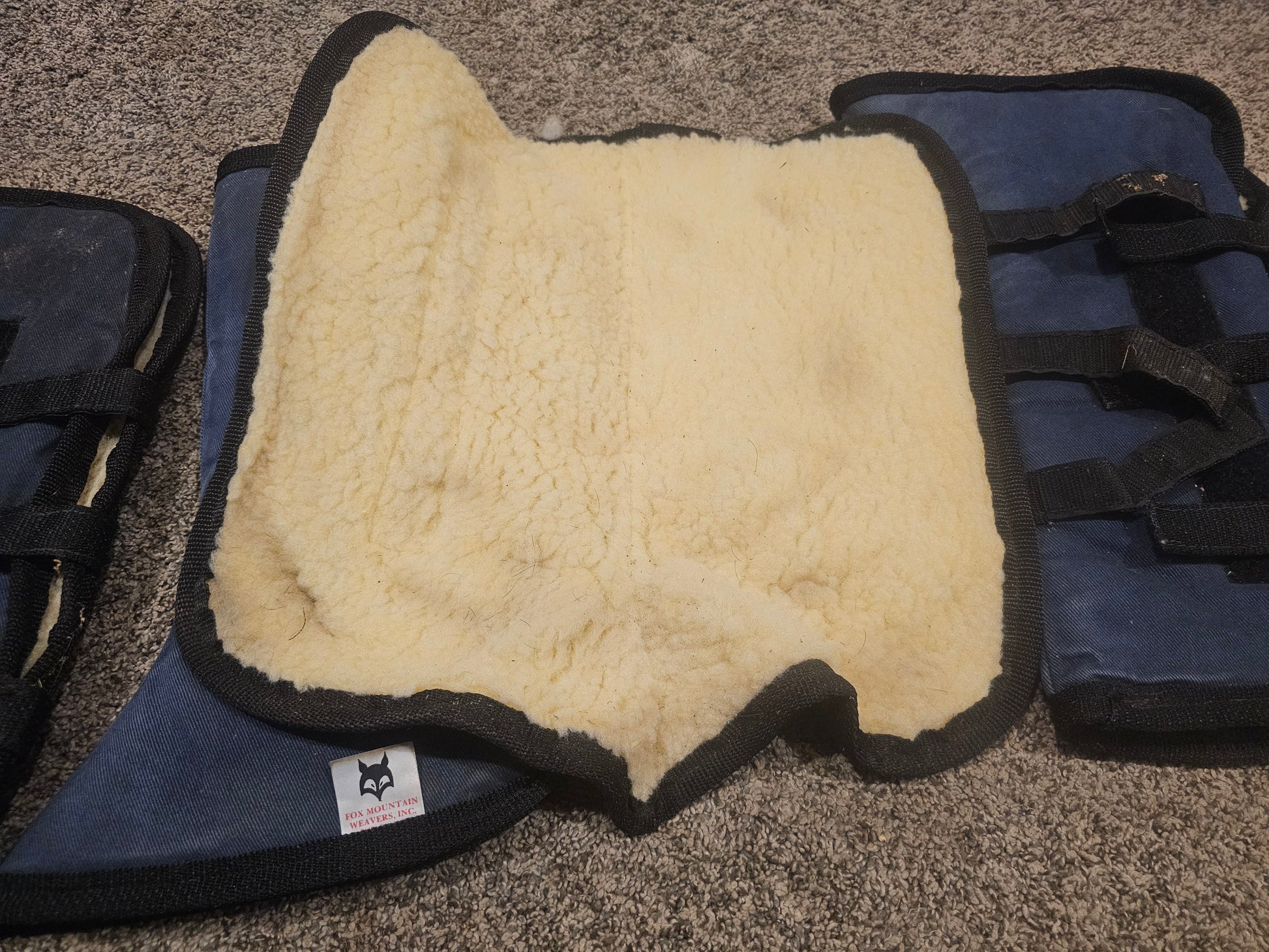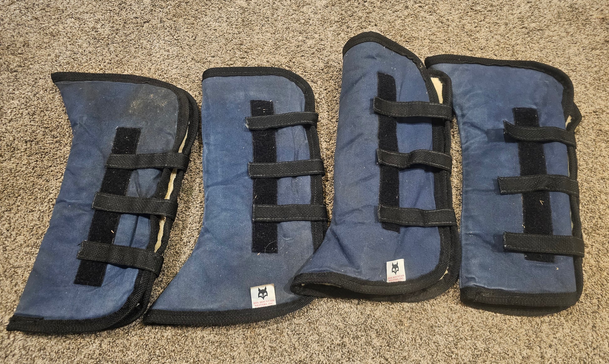 Set of 4 pony/Mini Travel Boots, shipping boots or just leg wraps, blue, fleece lined, used, all velcros still sticky